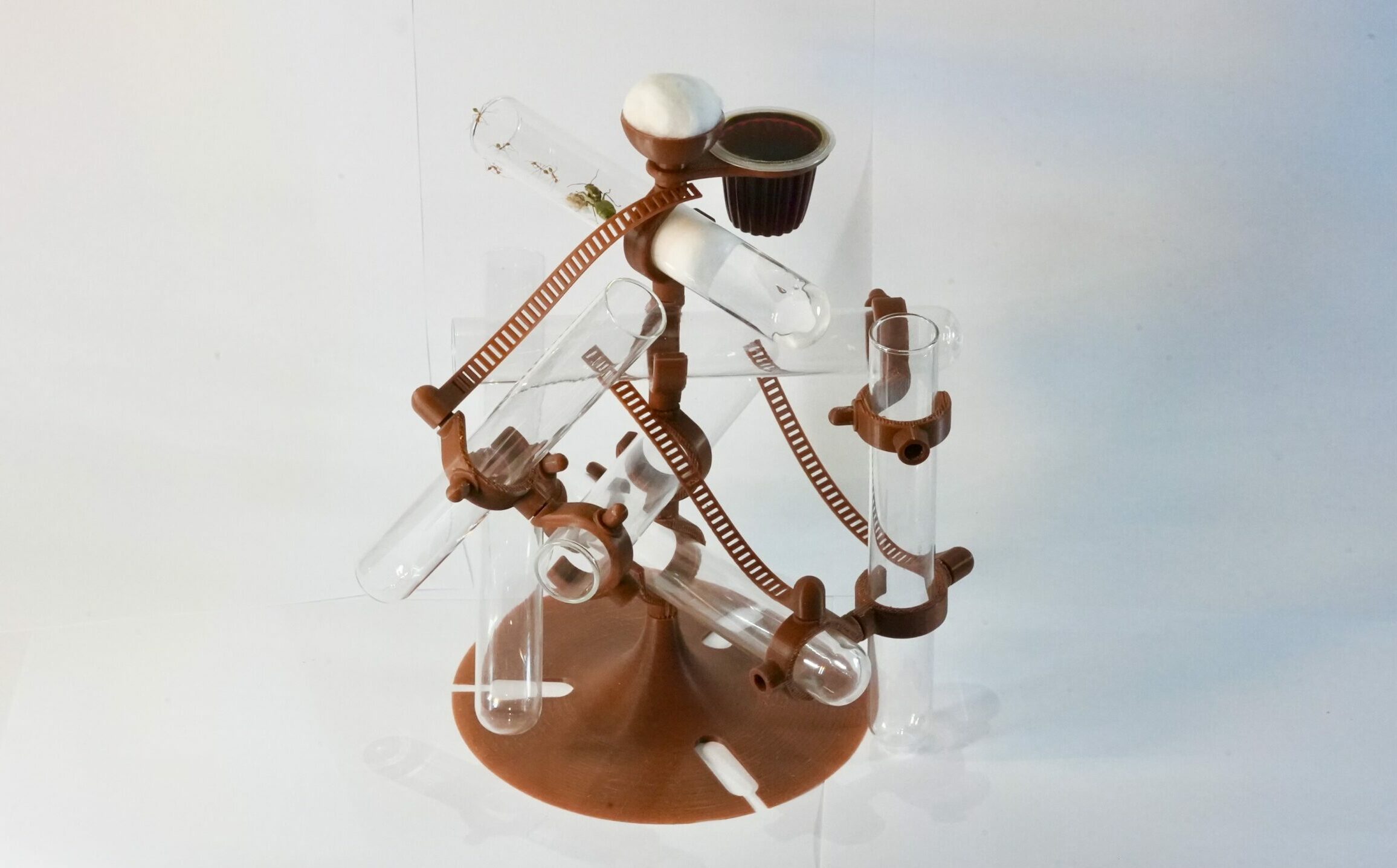 Test tubes can be included or excluded, and jelly is sold separately in the “Ant Food” section of our website. The Treehouse is deigned to be strong and stable, but we advise that you always build balanced structures. If you’d like to build higher or further out from the base, you can tilt one of the tubes vertically to act as a pillar, or additional pieces (including bases) are sold separately. Be aware that, with regular use, the joint connections between the pieces may loosen, so we advise not to connect and disconnect more often than needed.